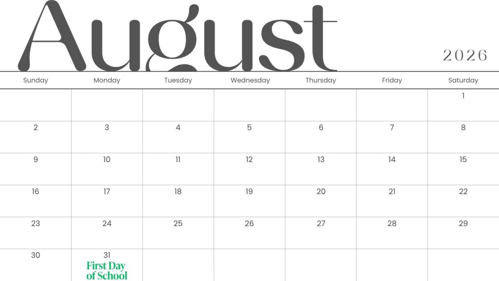 - August 31st – First Day of School