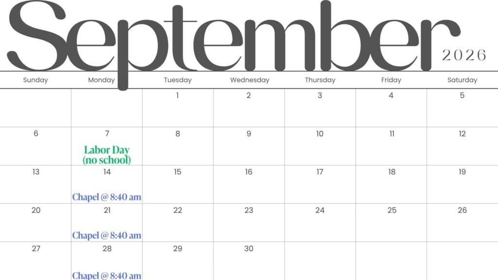 - September 7th – Labor Day (no school)