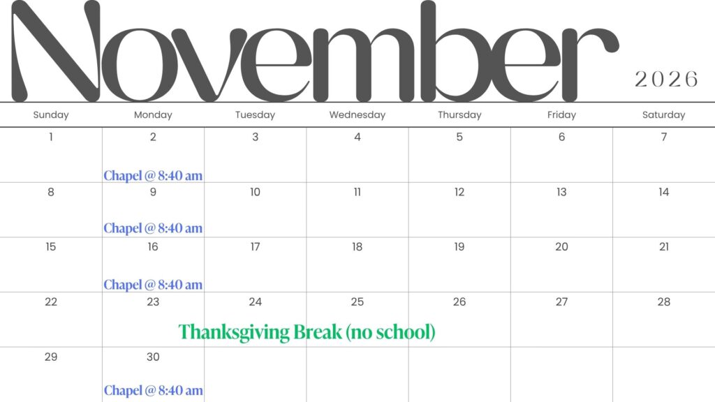 - November 23rd-26th – Thanksgiving Holiday (no school)