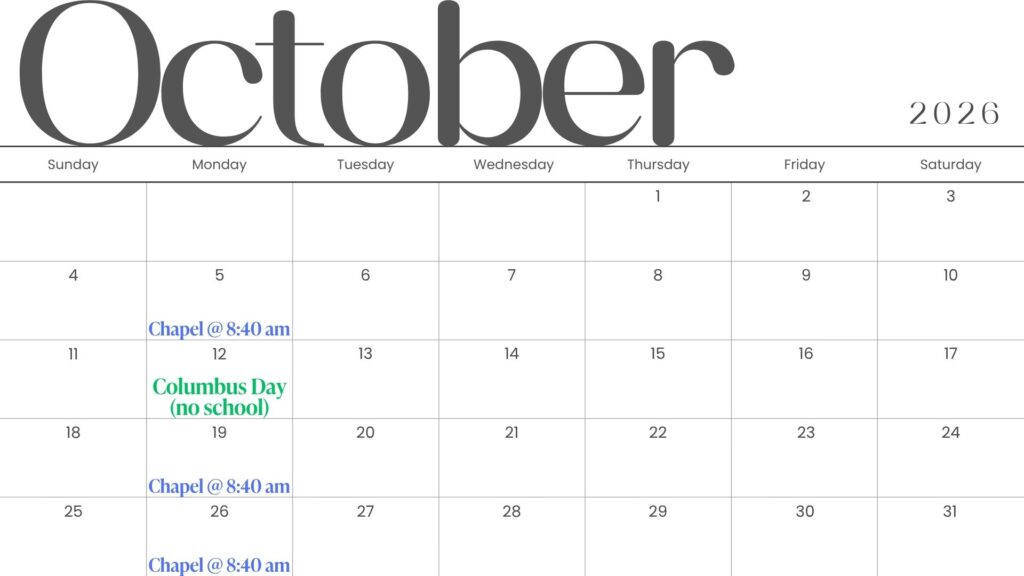 - October 12th – Columbus Day (no school)